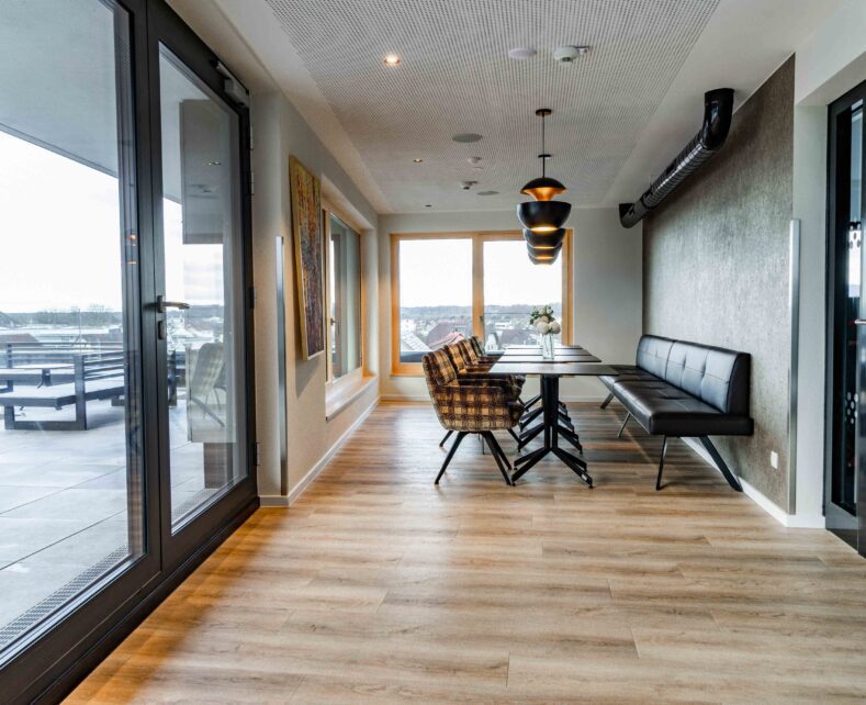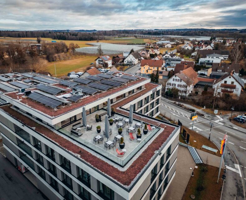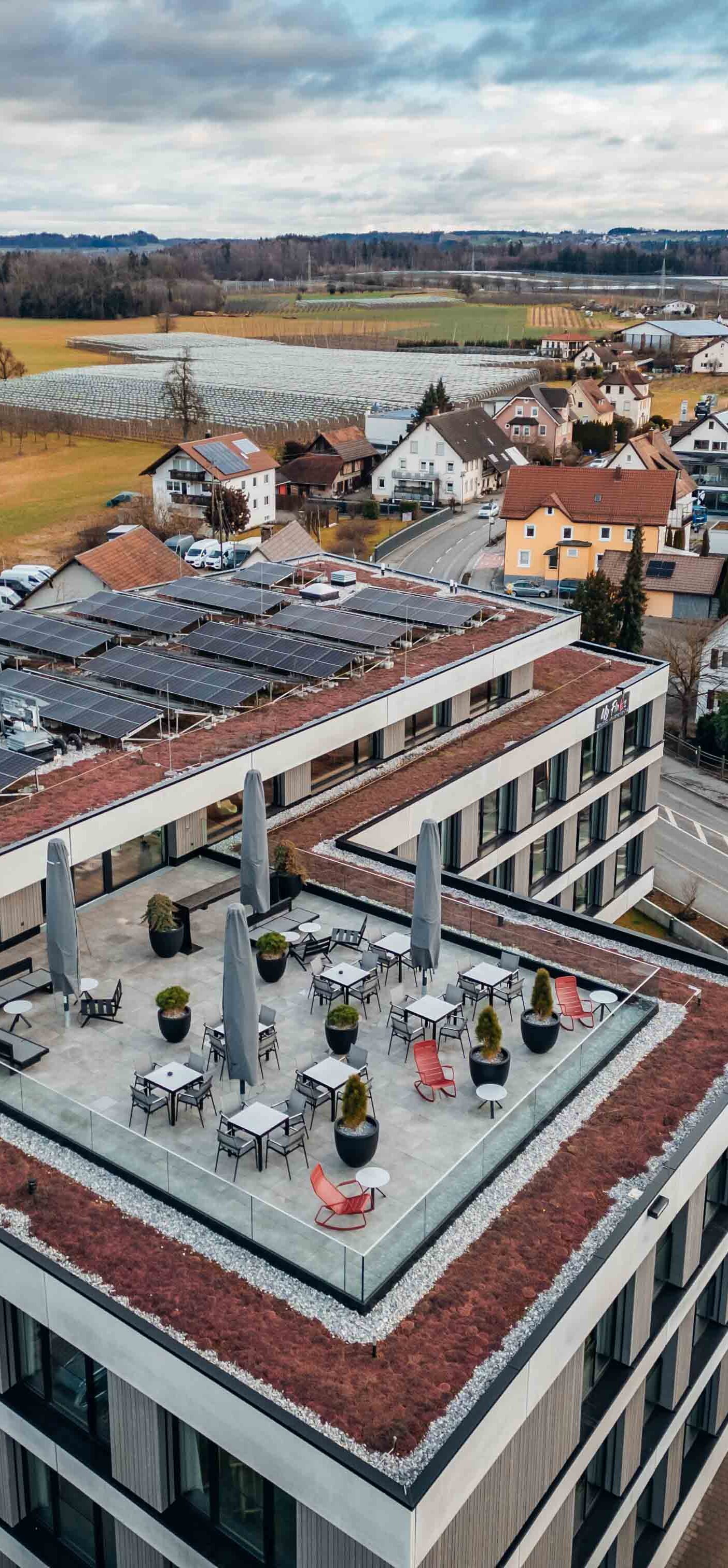 Brera Meckenbeuren-Friedrichshafen, dein modernes Apartmenthaus mit 52 gemütlichen Apartments und Dachterrasse mit Alpenblick. Die zentrale Lage am Bodensee bietet dir einfachen Zugang zu den wichtigen Unternehmen in Meckenbeuren, Friedrichshafen, Ravensburg und Tettnang. Sehenswürdigkeiten wie das Ravensburger Spieleland, das Zeppelin- und Dornier-Museum, zahlreiche Burgen und der Bodensee sind schnell zu erreichen. Die öffentlichen Verkehrsmittel sind in wenigen Minuten fußläufig erreichbar und Parkplätze im Haus ausreichend angeboten. Die Bodenseeregion lässt sich darüber hinaus gut mit dem Fahrrad erkunden. In einem abschließbaren Radkeller steht auch dein Fahrrad sicher über Nacht.